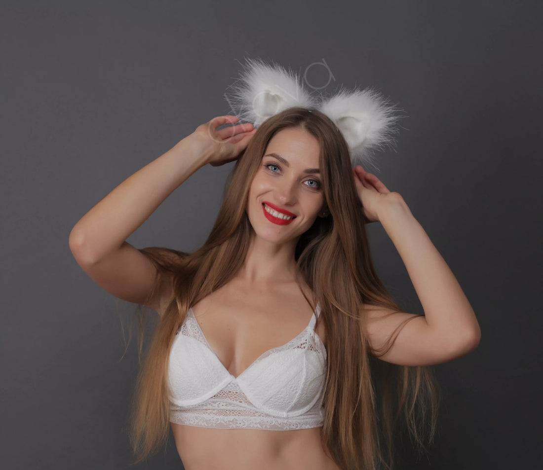 The Cat tail butt plug white and Cat ears white 40" is a unique and playful addition to your collection of adult toys. The high-quality faux fur tail is 40 inches long and features a white color with a black tip and black dot, giving it a realistic cat tail appearance. The butt plug is available in either metal or silicone, depending on your preference. This product is handmade and comes with worldwide shipping and a 100% privacy guarantee. Whether you're looking to spice up your sex life or simply enjoy the sensation of wearing a tail, this product is sure to satisfy.