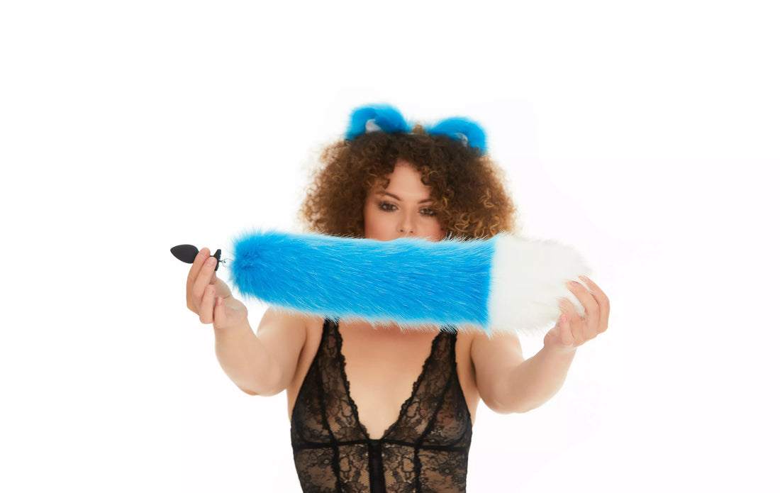 The Tail Butt Plug in bright blue with a white tip is a unique and playful addition to any adult toy collection. The 19-inch faux fur tail is made of high-quality materials and is attached to a metal or silicone butt plug, depending on your preference. The bright blue color with a white tip adds a pop of color and fun to your intimate playtime. Handmade with care, this product is shipped worldwide with a 100% privacy guarantee. Whether you're looking to explore your wild side or add some excitement to your bedroom, the Tail Butt Plug is a must-have for any adventurous adult.
