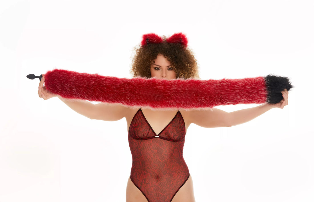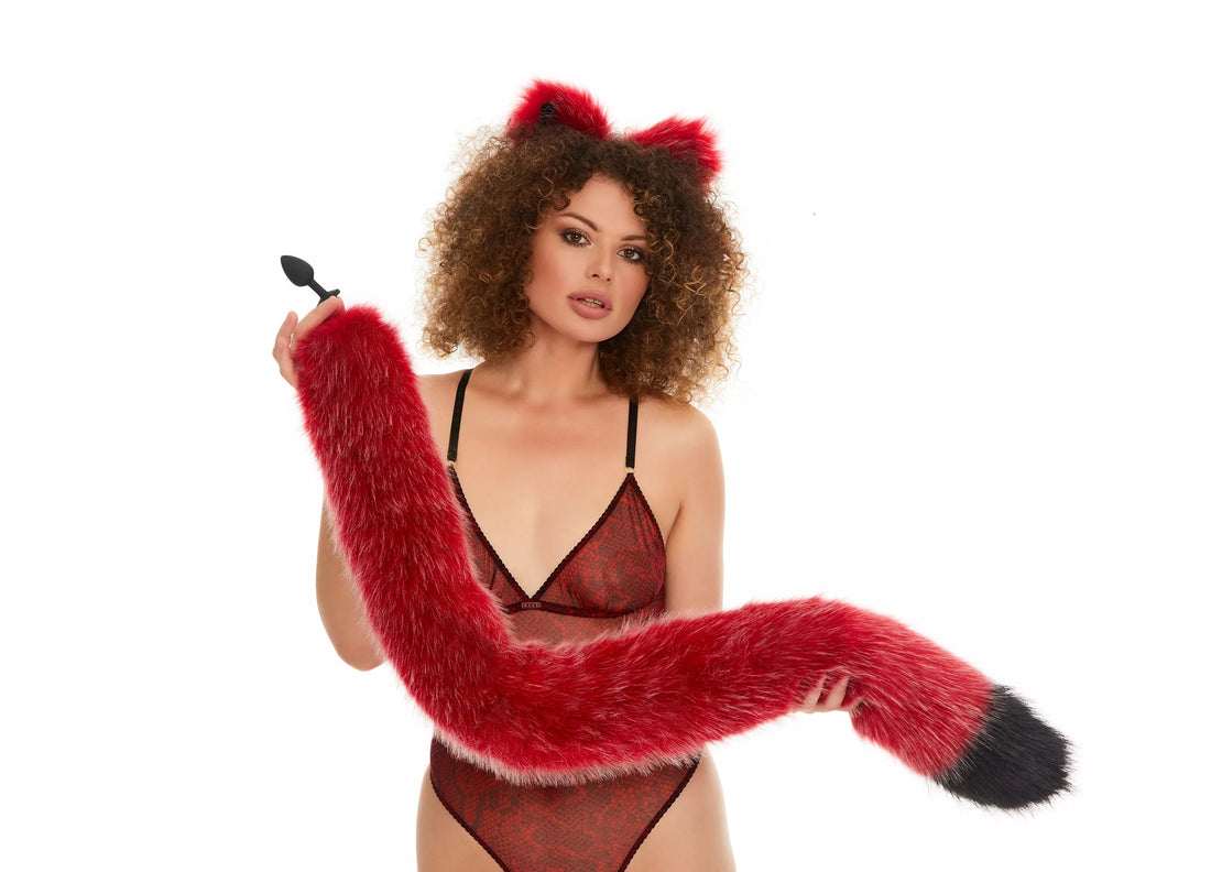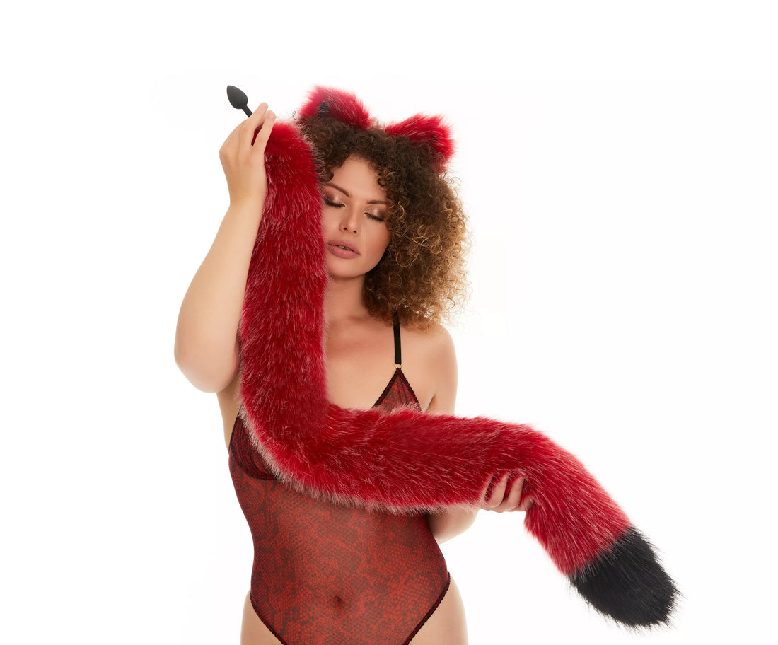 The Tail Butt Plug Deep Red with Black Tip 40" is a unique and playful addition to your collection of adult toys. The high-quality faux fur tail is a deep red color with a black tip, measuring 40 inches in length. The butt plug is available in either metal or silicone, depending on your preference. This product is handmade and comes with worldwide shipping and a 100% privacy guarantee. Whether you're looking to spice up your sex life or explore new sensations, this tail butt plug is sure to provide a thrilling experience.