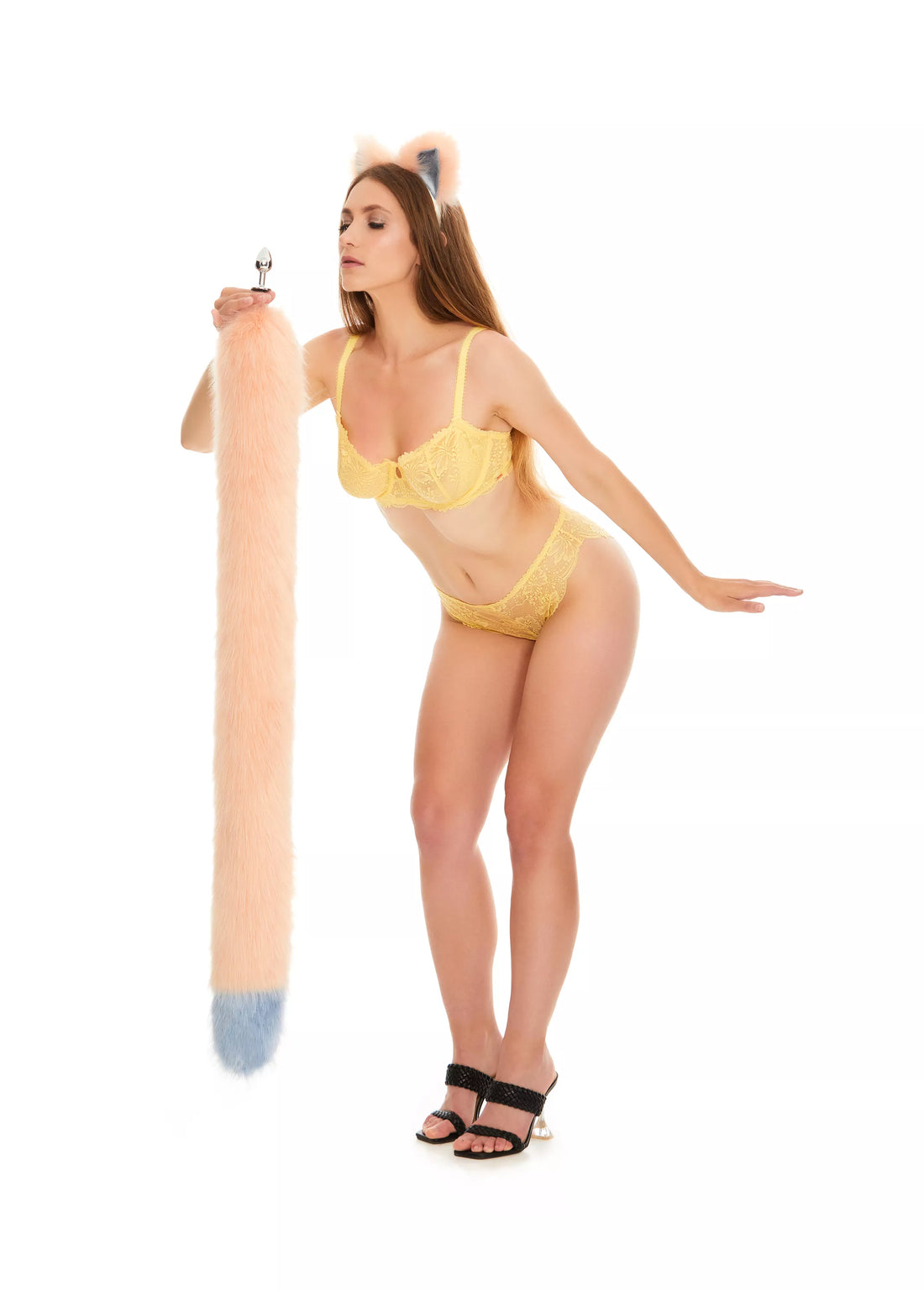 The Tail Butt Plug Peach with Light Blue Tip 40" is a unique and playful addition to your collection of adult toys. The high-quality faux fur tail is a beautiful peach color with a light blue tip, measuring 40 inches in length. The butt plug is available in either metal or silicone, depending on your preference. Handmade with care, this product is shipped worldwide with a 100% privacy guarantee. Whether you're looking to spice up your intimate moments or explore new sensations, this tail butt plug is sure to provide a fun and exciting experience.
