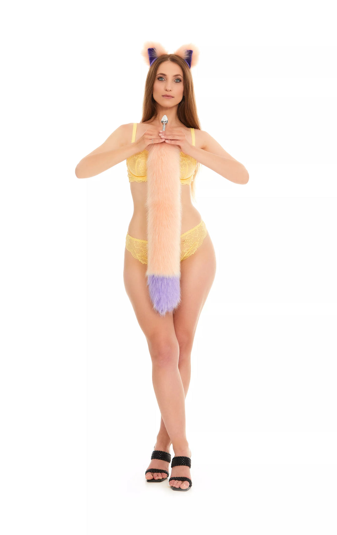 The Tail Butt Plug Peach with Purple Tip 25" is a unique and playful addition to your collection of adult toys. The high-quality faux fur tail is a beautiful peach color with a striking purple tip, measuring 25 inches in length. The butt plug is available in either metal or silicone, depending on your preference. This product is handmade and comes with worldwide shipping and a 100% privacy guarantee. Whether you're looking to spice up your sex life or indulge in some playful role-playing, this tail butt plug is sure to satisfy.